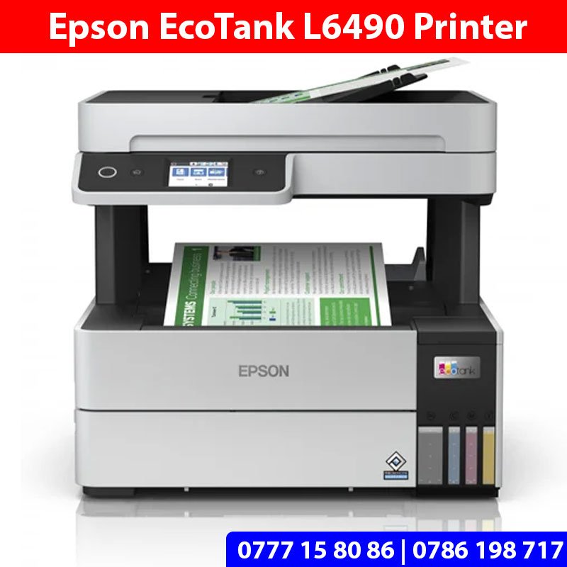 Epson L6490 Printers Sri Lanka Discount Price and  01 year warranty. This Epson EcoTank L6490 Multi function colour printer is heavy duty ink tank colour printer for Office use, Shop use and Personal Use. Waterproof pigment ink use for this Epson multi function printer.